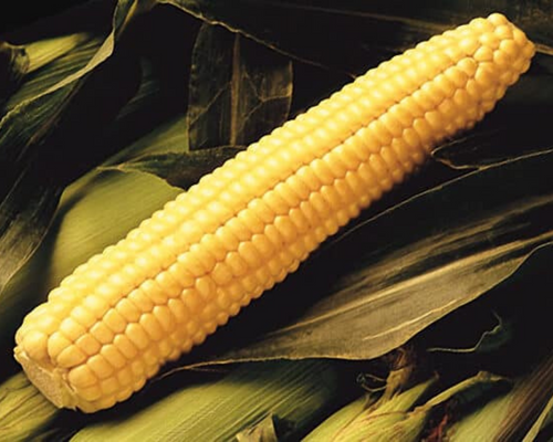 Our earliest “normal” corn by 2 weeks is very resistant to cold and frost. Well-filled ears with 12 rows of sweet yellow kernels on red-tinged stalks. None better to freeze on the cob!