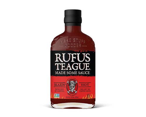 This is the real deal, not some cheap knockoff. As with all Rufus Teague sauces, we cook them longer, so they are less watery, and the flavor is more intense. Made with the finest natural ingredients, Blazin Hot has a classic tomato base and is sweetened with real sugar and molasses. A myriad of peppers gives it enough heat that you'll be wanting to cool down with another bite. So, make your food happy and remember, Good sauce makes bad barbecue good and good barbecue gooder.
