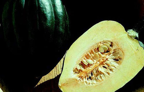 Semi-bush acorn type that matures a week to 10 days earlier than open-pollinated strains. Very dark, almost black fruits are filled with smooth, sweet, golden nutty flavored flesh. Compact vines are highly productive and ideal where space is at a premium.